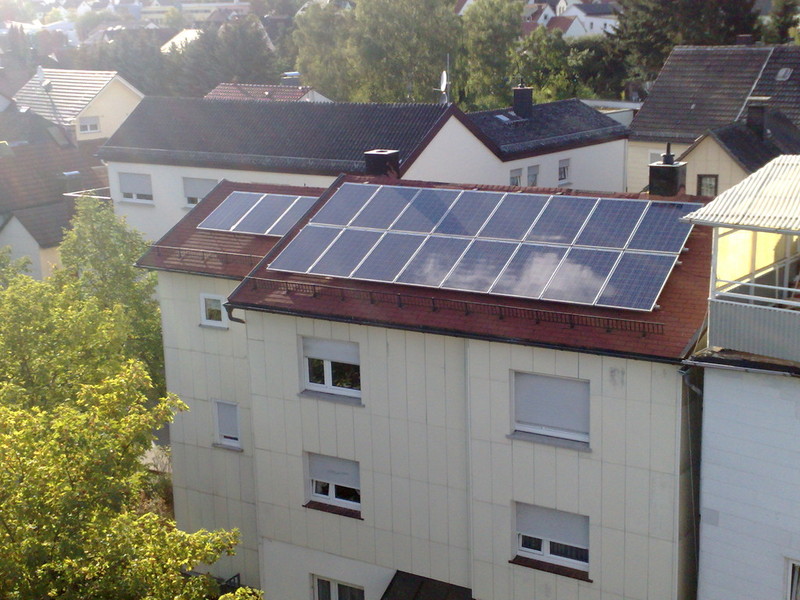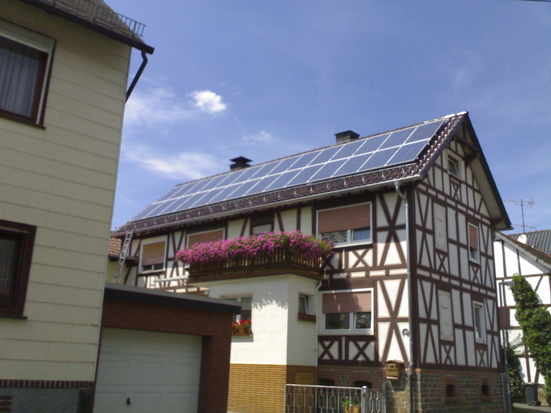 In einer Fotovoltaik -Anlage (auch Solarstromanlage genannt), findet die Umwandlung von Sonnenenergie in elektrische Energie statt.