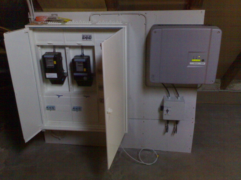 Über Kabel wird die elektrische Energie nun dem System zugeführt. Entweder wird sie gespeichert, dann spricht man von einer Inselanlage, oder in das öffentliche Stromnetz eingespeist (sog. Netzgekoppelte Anlage bzw. Hybridanlage)