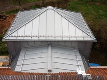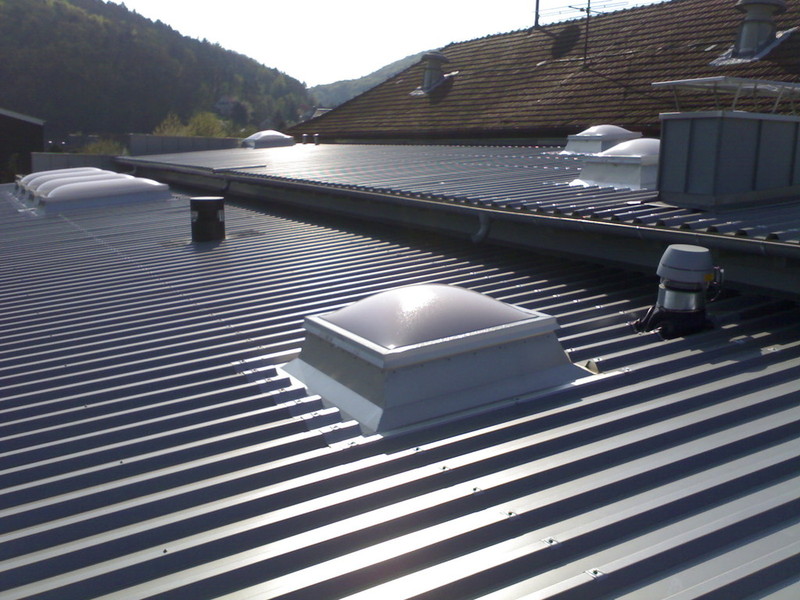 Auch Dacheindeckungen aus Aluminium, in dem gewünschten Farbton, werden immer zahlreicher, da sie sehr leicht sind und auch bei geringen Neigungen verlegt werden können.